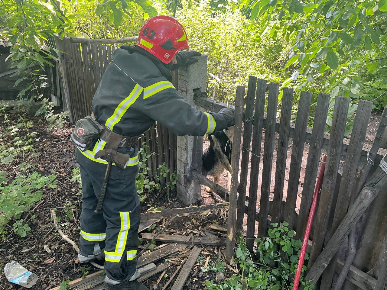 Рятувальники Донеччини врятували собаку, який застряг в паркані та не міг вибратись без сторонньої допомоги