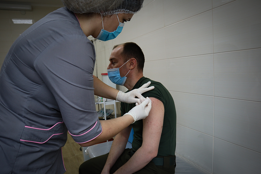 «Зараз відбувається вакцинація військовослужбовців Національної гвардії України згідно програми Міністерства охорони здоров’я. Використовуємо вакцину Oxford Astra Zeneca CoviShield. Згідно цієї програми військовослужбовці, які виконують завдання в районі проведення ООС є у пріоритеті. Вакцинацію робить мобільна бригада від МОЗ. Бажаючі вакцинуються у добровільному порядку першою дозою та через певний час – другою», – пояснив начальник медичної служби військової частини 3035 старший лейтенант Максим Дибаньов.