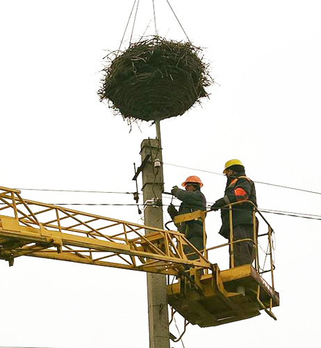 “Свили” гнездо для аистов: в Донецкой области энергетики установили специальную платформу