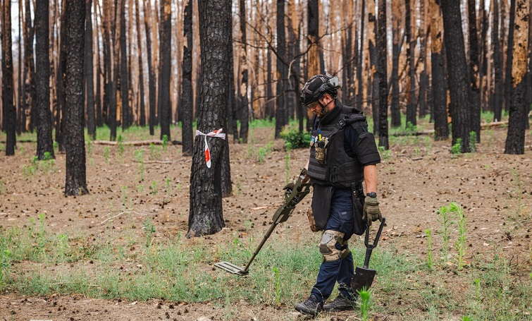 Ліси залишаються під подвійною загрозою — від війни та вогню. Щоб вогонь не міг швидко поширюватися, фахівці створюють спеціальні мінералізовані смуги, але спершу ці ділянки очищають від снарядів і мін.