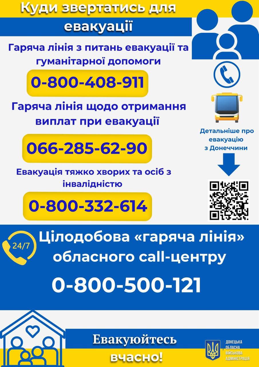 Для евакуації тяжко хворих і осіб з інвалідністю треба телефонувати за номерами: 0800332614, 0997104872, 0993115314, 0961086048.