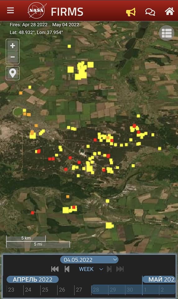 Моніторинг стану лісів ведеться за допомогою продукту FIRMS від NASA.