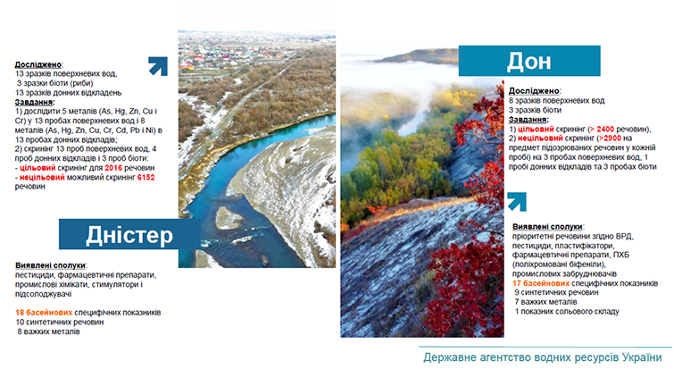 “Скринінг води здійснювали на близько 40 тисяч речовин. Це близько 40% від усіх речовин, які наявні на ринку. 18 з них потрапили до списку обов’язкових для подальшого моніторингу на Сіверському Донці, 19 – на Дністрі”, – відзначила Тамара Кутонова, регіональна координаторка проекту Глобального екологічного фонду з Дністра, співробітниця проектів ОБСЄ.