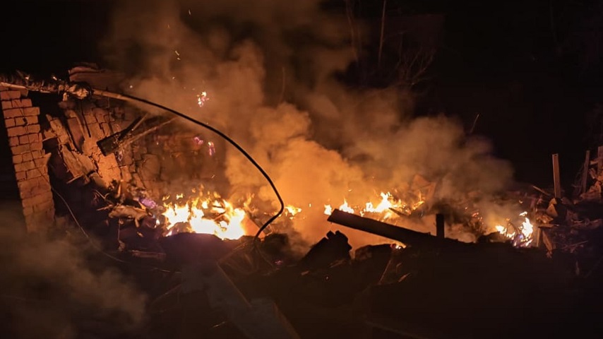 Уночі російські війська вдарили по приватному сектору Слов’янська. Внаслідок атаки виникла пожежа. Надзвичайники загасили вогонь на місці руйнування будівельних конструкцій та сміття. Площа займання склала близько 15 квадратних метрів.
