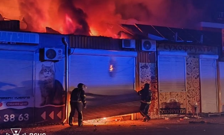 Уночі Слов’янськ зазнав обстрілу, у результаті якого пошкоджено 13 торговельних павільйонів. У трьох із них спалахнула пожежа на площі 60 квадратних метрів, яку рятувальники оперативно ліквідували.