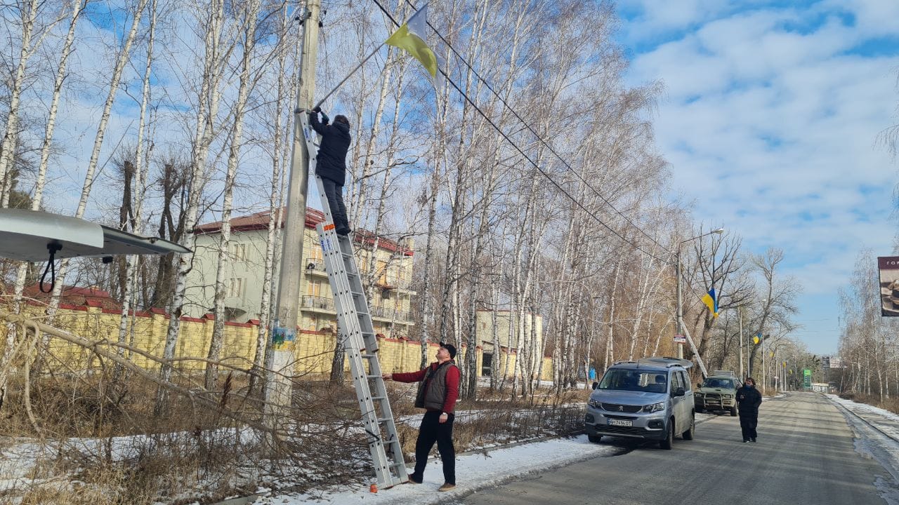 Декілька років тому прапори придбали до Дня Незалежності України та вивісили на стовпах по вулиці Курортній місцеві активісти.