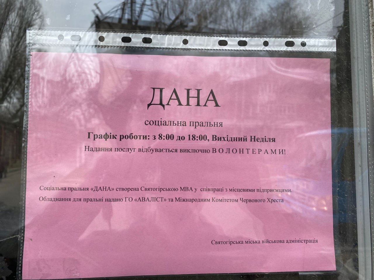 З 17 березня у Святогірську запрацювала безплатна пральня «ДАНА» для місцевих жителів та внутрішньо переміщених осіб, які знайшли прихисток у місті.