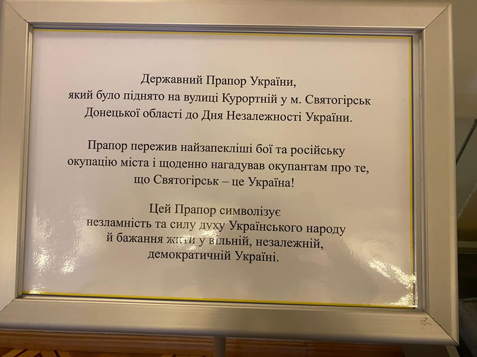 «Цей прапор один з тих, що були підняті по вулиці Курортній до дня Незалежності України та пережили окупацію, нагадуючи ворогові, що Святогірськ – це Україна!», – зазначили у Святогірській міській військовій адміністрації.