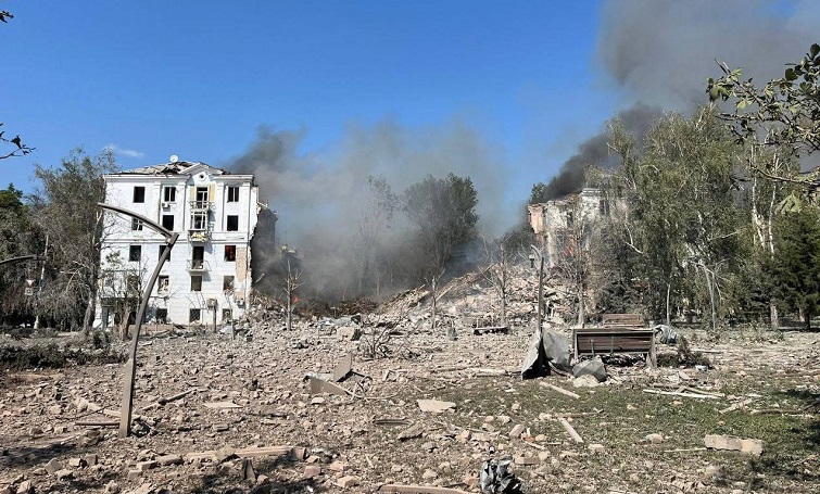 Сьогодні вдень російські війська вдарили по житловому будинку в центрі Краматорська. Влучання в п’ятиповерхівку — половина будівлі зруйнована.