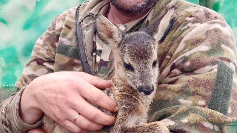 “До нас звернулася дружина військового, який служить під Лиманом. Там чоловік разом із побратимами знайшли крихітне оленя. На думку військових, йому приблизно 5-7 днів. Малесеньке оленя було геть самотнє під щільними обстрілами. Наша команда евакуації саме була в рейсі і терміново змінила маршрут, щоб забрати оленя”, — розповіли волонтери.