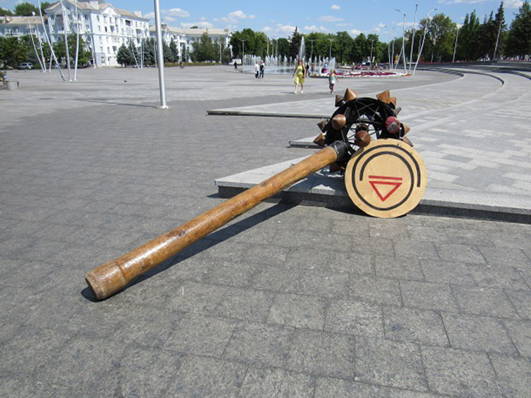 Сегодня, 19 июля, на площади Мира появилась огромная булава, которая, не смотря на то, что по сути является оружием, должна принести мир и добро в город, – пишет Восточный Проект.