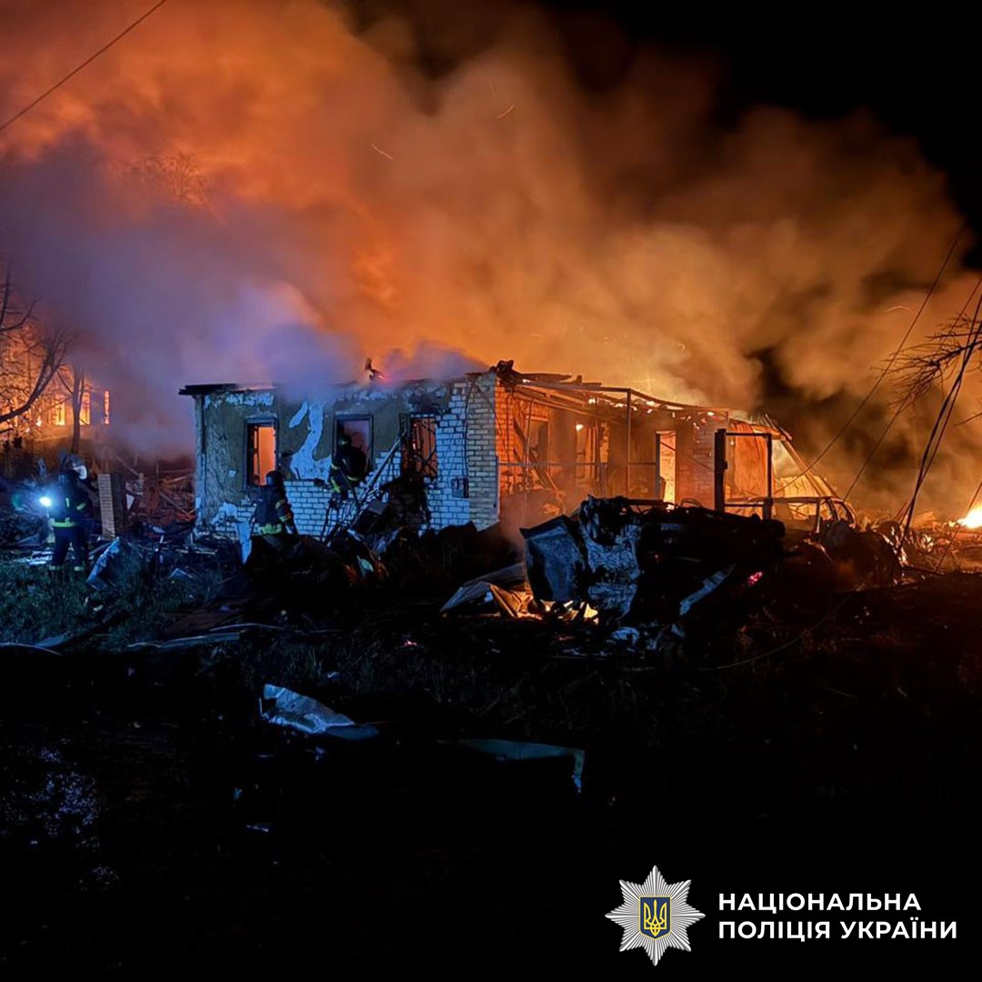 Також дронами пошкоджено дві цивільних вантажівки. На місці бомбового удару тривають пошуково-рятувальні роботи, працюють парамедики, слідчі, вибухотехніки, патрульна поліція, ДСНС.