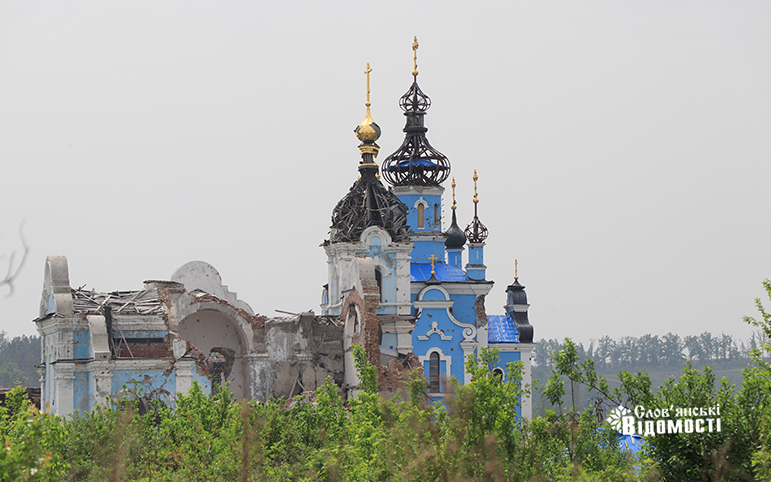 Так сьогодні, майже через два роки після активних боїв у регіоні, виглядає Храм Пресвятої Богородиці «Всіх скорботних радість» у селі Богородичне Донецької області, за 5 км від Святогірська. Його було зруйновано під час артилерійського обстрілу 19 травня 2022 року. Саме на цій ділянці фронту українські сили оборони спинили наступ російських окупантів влітку 2022 року.