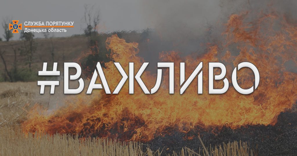 Шановні громадяни! Закликаємо вас неухильно дотримуватись правил пожежної безпеки! Наразі, на території Донецької області, вже тривалий час спостерігається високий рівень пожежної небезпеки (5 клас), посушлива погода ускладнюється сильним поривчастим вітром.