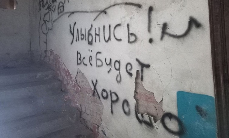 Попри зруйновані будинки й умови, далекі від життя, в одному з під’їздів Авдіївки, до якого ще не дійшов так званий процес «відновлення», на стіні з’явився напис: «Посміхнись. Все буде гаразд». Автор — невідомий, оптимізм — майже безмежний.