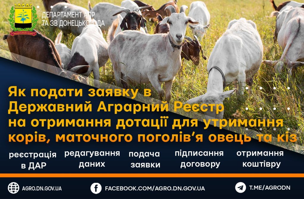 Як подати заявку в Державний Аграрний Реєстр на отримання дотації для утримання корів, маточного поголів’я овець, кіз