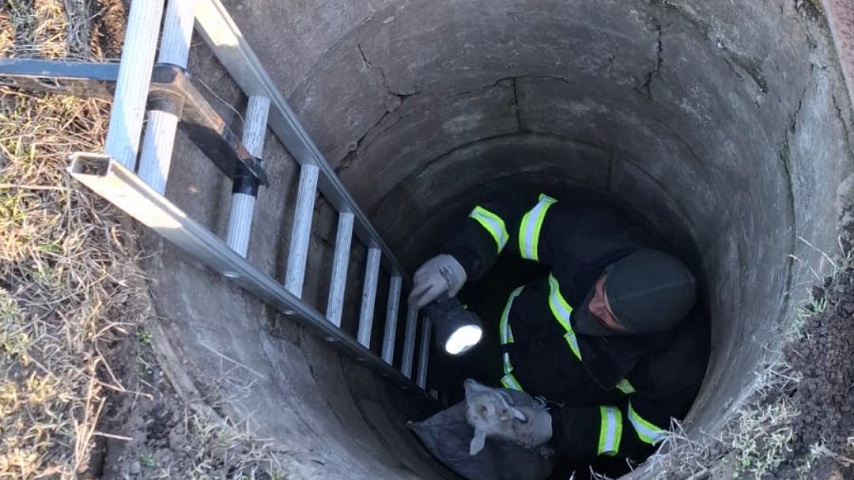 На місце виїхали рятувальники. За допомогою штурмової драбини один із надзвичайників спустився на дно колодязя, обережно підняв тварину та передав її господарю.