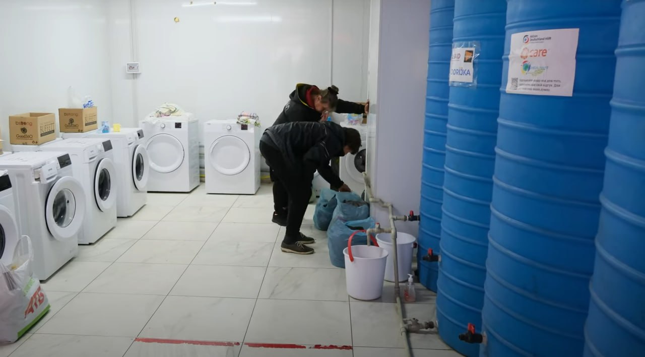 «Комплекс має три душові кімнати, туалет, дві пральні машинки. Це дуже допомагає за відсутності світла, особливо в холодну пору року. Можна випрати речі якось руками, а сушити? А тут одразу і душ гарячий можна прийняти, і в цей час машинка речі буде прати. На людину виділяється година, тож можна встигнути все. Працюємо двічі на тиждень — по понеділках та четвергах», — розповідала Ольга у коментарі нашій редакції.