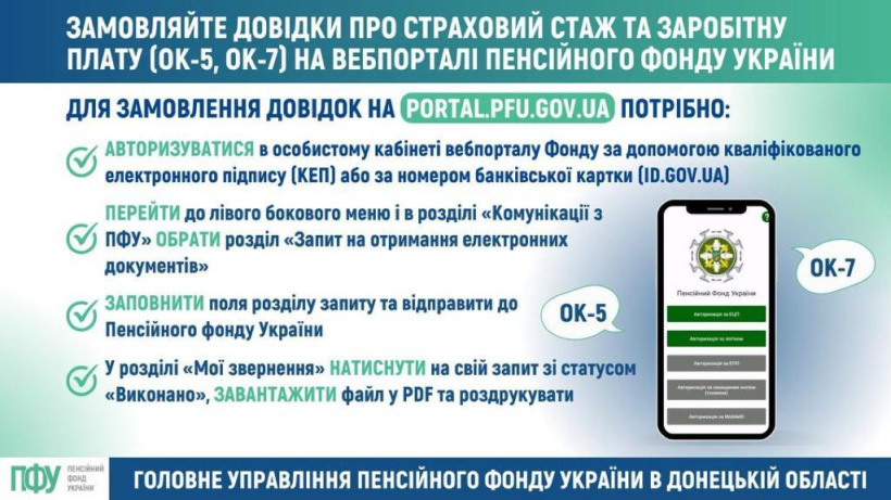 Як замовити довідки від ПФУ про страховий стаж, заробітну плату (форми ОК-5 та OK-7), розмір пенсії