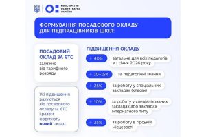 У відомстві наголошують: частина виплат є гарантованою, інші залежать від навантаження, стажу, кваліфікації та додаткових обов’язків. Детальні роз’яснення щодо структури зарплати та чинників, які впливають на її розмір у 2026 році, МОН публікує в інформаційних матеріалах.