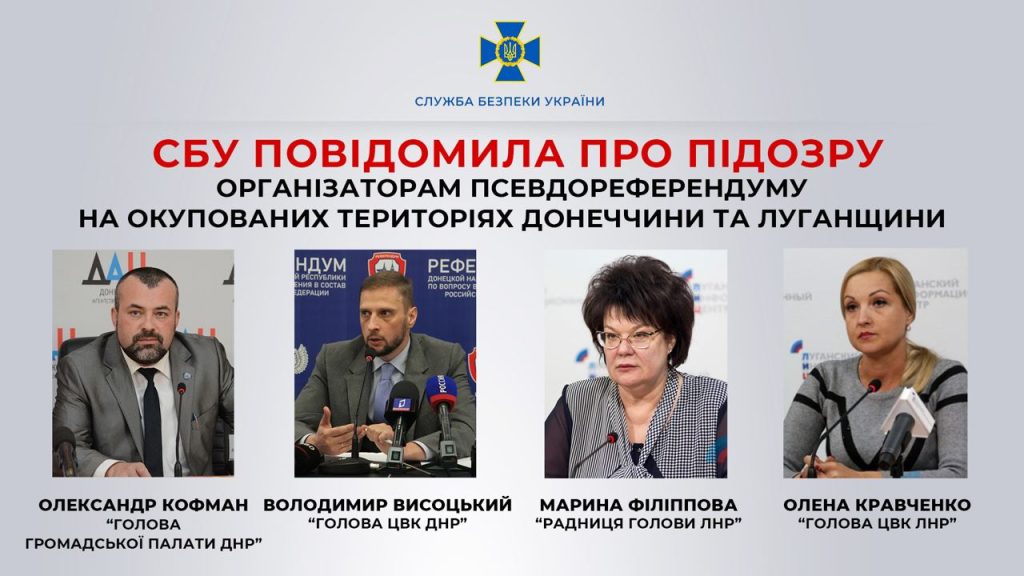 Служба безпеки України встановила та зібрала вичерпну доказову базу на організаторів російського псевдореферендуму на тимчасово окупованій території Донецької та Луганської областей.
