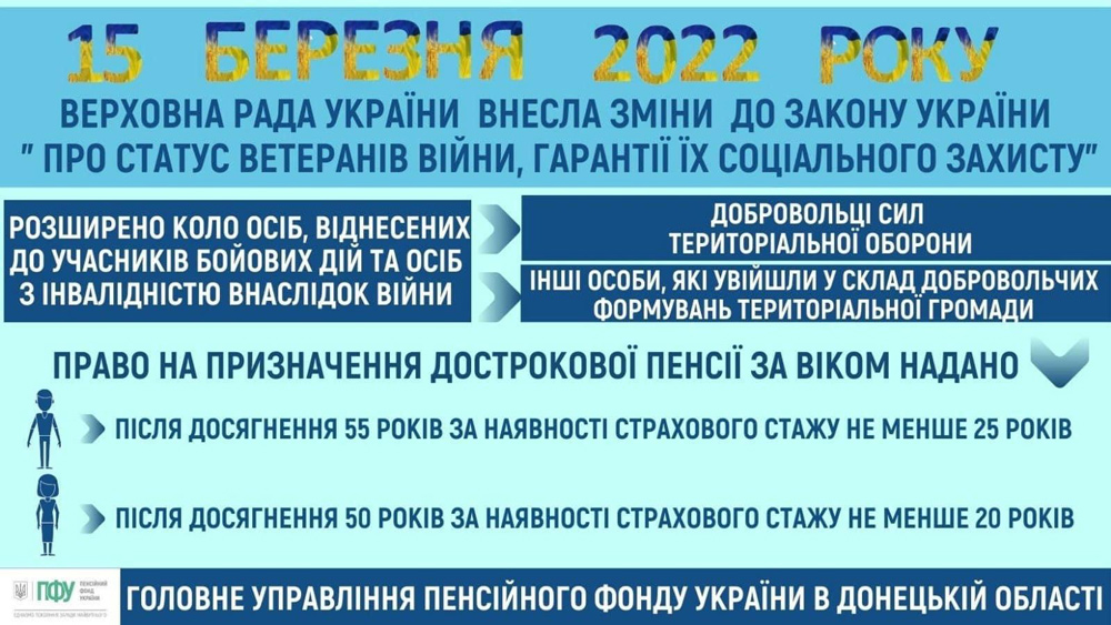 Про це повідомляє Головне управління Пенсійного фонду України в Донецькій області. Відповідні зміни передбачені Законом «Про статус ветеранів війни, гарантії їх соціального захисту».