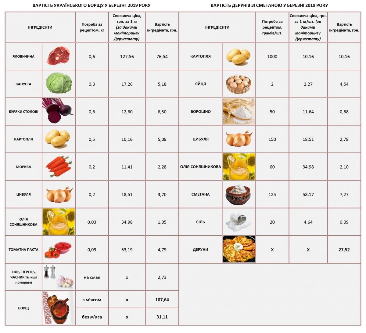 В течение первого квартала текущего года выросли цены на овощи, что привело к удорожанию многих блюд традиционной украинской кухни, пишут Українські Новини. Так, по расчетам Экономического дискуссионного клуба (ЭДК), в марте 2019 приготовление популярных украинских блюд стоило: