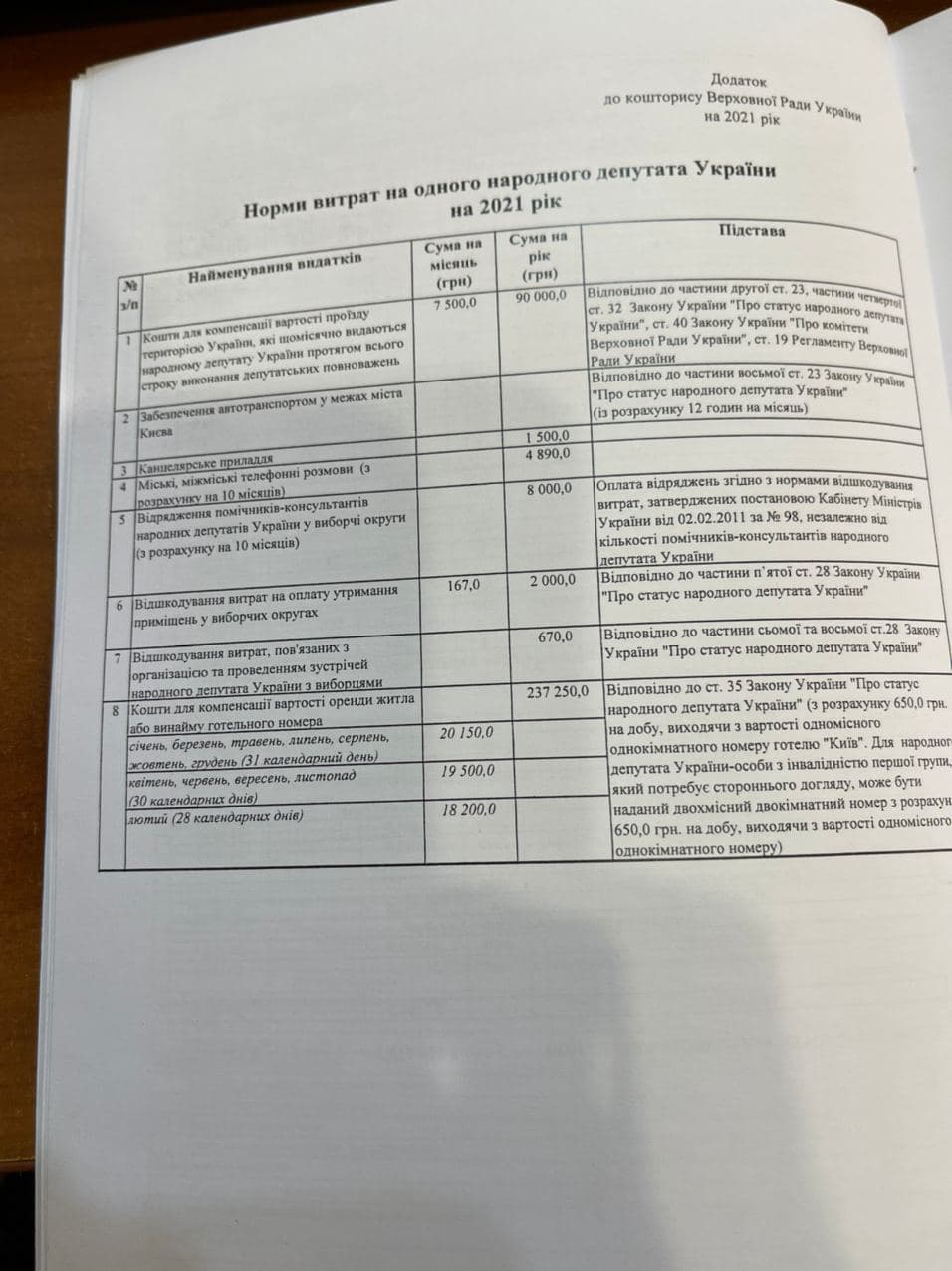 Согласно этому документу, для каждого народного депутата в следующем году предусмотрено: