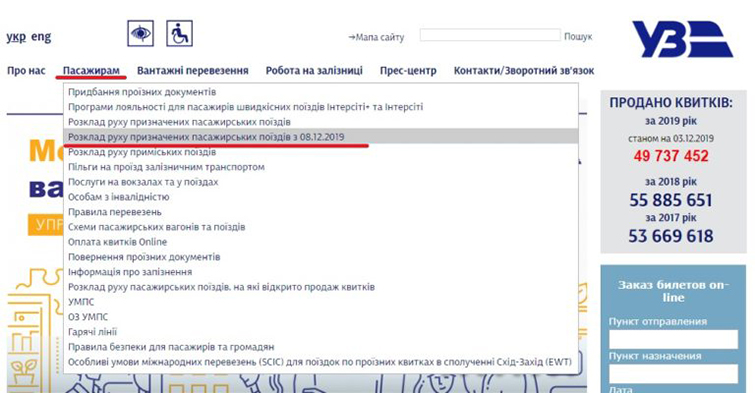 Ознакомиться с обновленным графиком движения скоростных поездов на 2019-2020 год можно на сайте АО «Укрзалізниця» в разделе «Пассажирам», подразделение «Расписание движения назначенных пассажирских поездов с 08.12.2019».