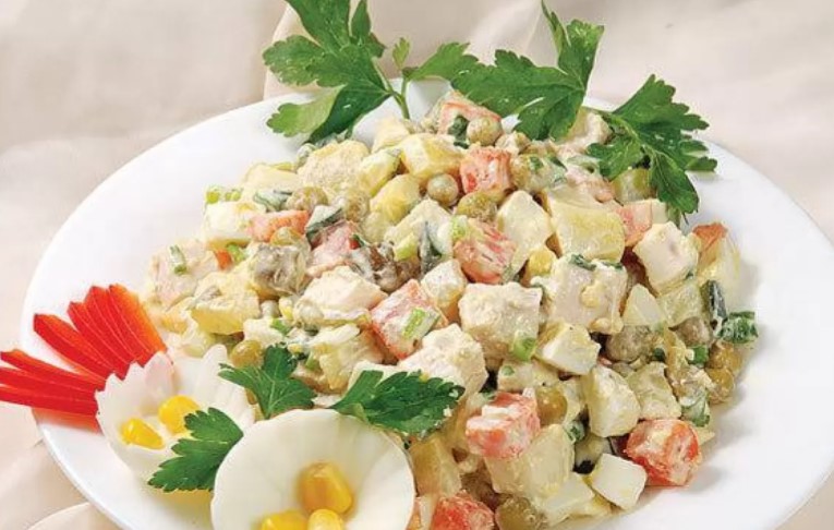 По словам эксперта, колбасу в салате “Оливье” можно заменить на мясо птицы или телятину.