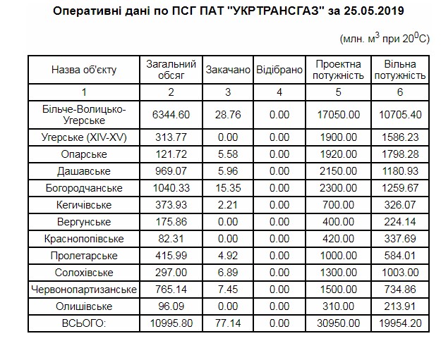 Запасы природного газа в украинских подземных хранилищах газа (ПХГ) по состоянию на 25 мая составили 10,99 млрд куб. м. Об этом свидетельствуют оперативные данные госкомпании “Укртрансгаз” – оператора украинской газотранспортной системы, пишет Сегодня.