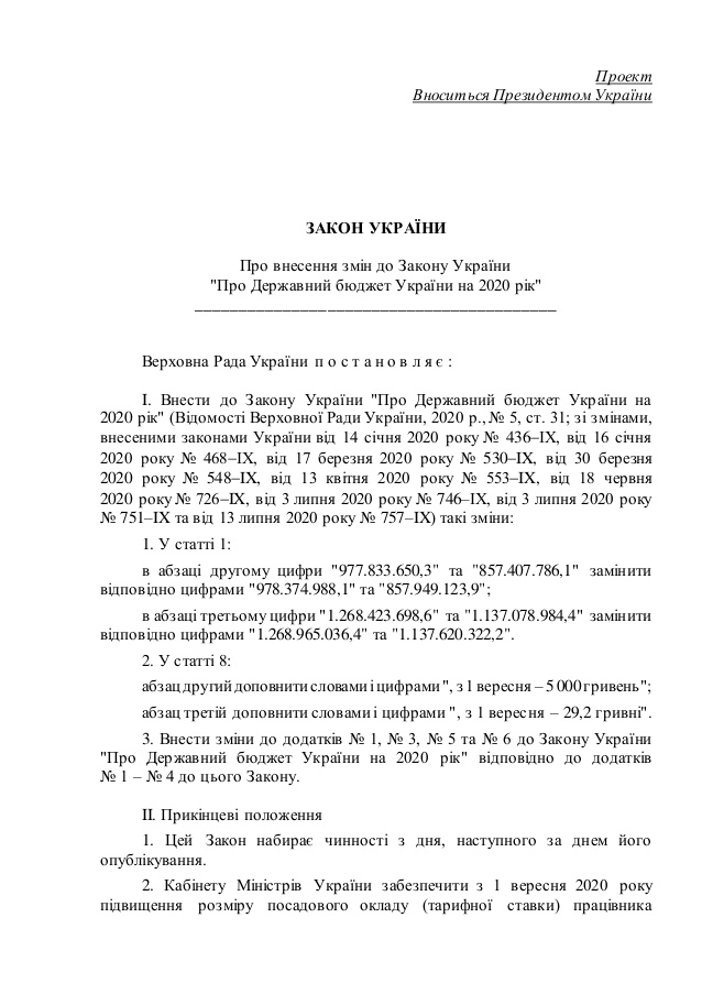 В частности, проект предлагает увеличить минимальную зарплату на 5,86% до 5000 гривен с 1 сентября.