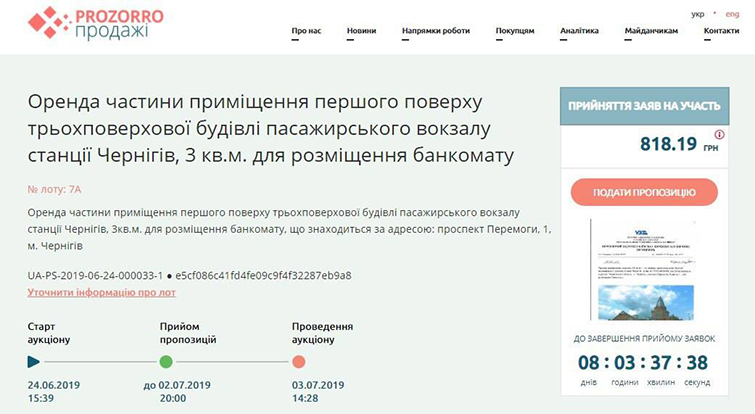 24 июня компания разместила лоты на более чем 30 объектов, аукционы по ним запланированы на 3 и 8 июля. В ближайшее время «Укрзалізниця» планирует выставить на торги еще 40 объектов.