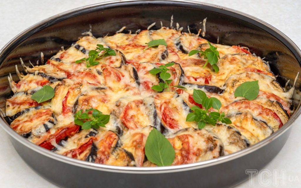 Баклажани, запечені з помідорами та сиром
