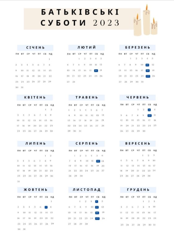• 25 листопада — батьківська субота перед Різдвяним постом.