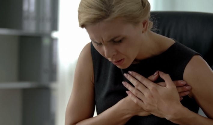 Обычно это сопровождает боль в груди, но одышка может начаться еще до возникновения дискомфорта в груди.