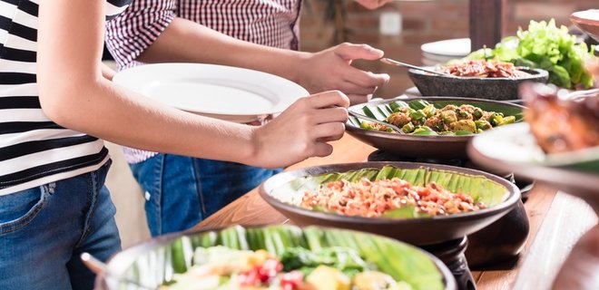 Тому якщо у вашому готелі шведська лінія, то спершу йдіть в зону корисної їжі (салати, цільнозернові, риба, м’ясо), а потім у зону з “їжею для душі”.